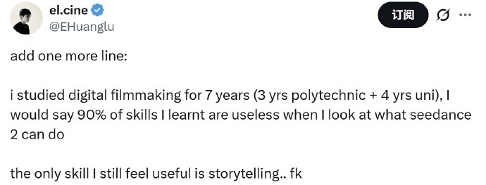 《黑听说:悟空》制作主谈主冯骥赞其“地表最强”,X上的影视创意顶流网红el.cine“哀嚎”:“学了7年数字电影制作,目下嗅觉90%齐白学了”。