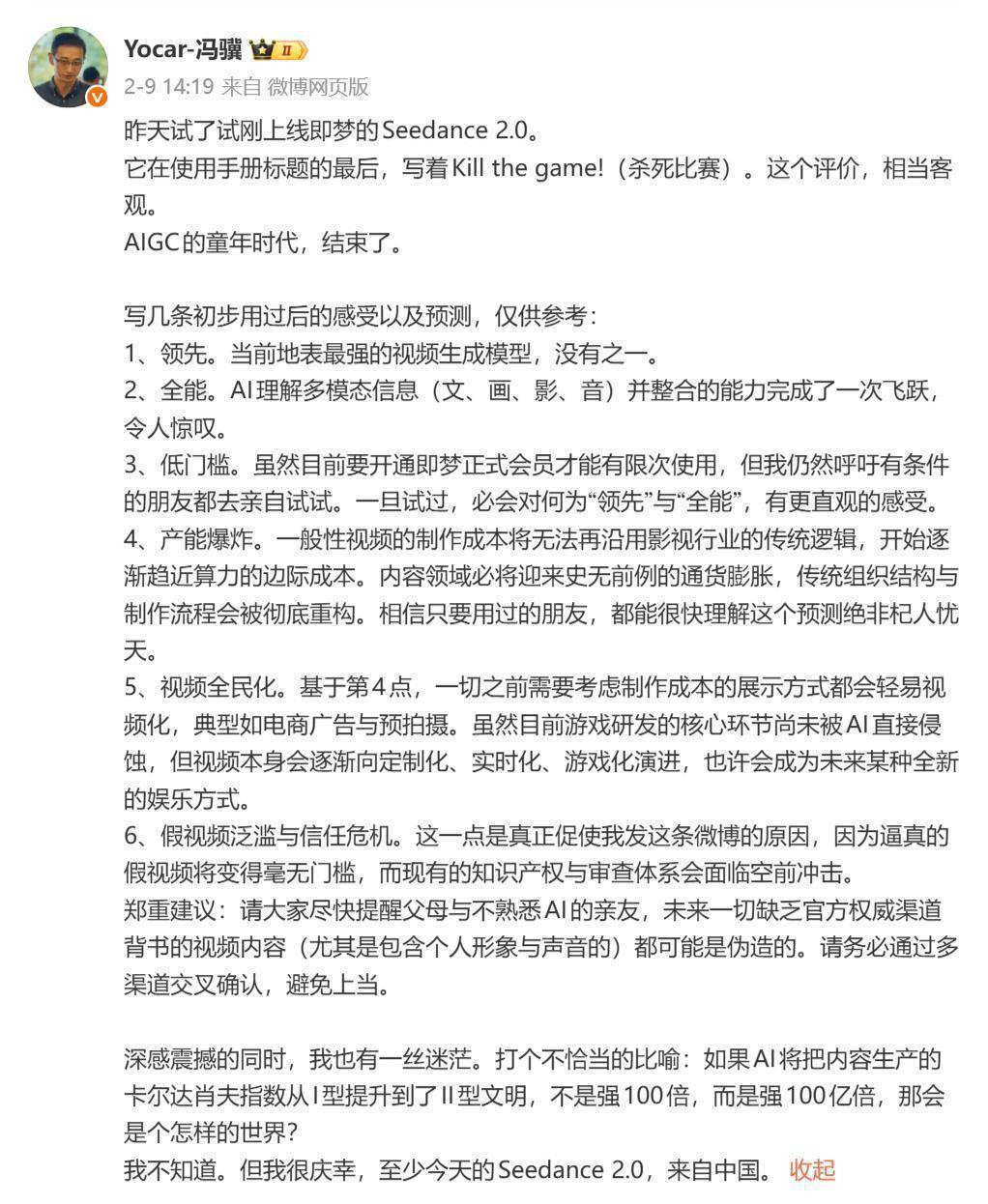 这也让Seedance 2.0的“可怕”有了另一层含义,智商过于强悍,又不断渗透活命场景的AI,在带来亢奋的高涨之时,经常也会带来难以扼制的忧惧。
